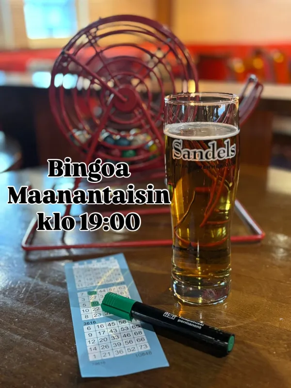 Bingon järjestämme maanantaisin ja baarikenon perjantaisin. Kaikkiin näihin osallistuminen on asiakkaillemme ilmaista.